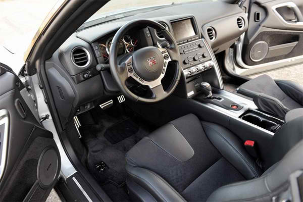One of the most notable features of the GT-R is its amazing all-wheel drive system. Called ATTESA E-TS, for Advanced Total Traction Engineering System for All Electronic Torque Split (say that five times fast), the GT-R’s AWD keeps all of its 3,900 pounds firmly planted to the pavement during its astonishing 2.8 second launch to 60 and . Sure, wheel spin is only natural and the common high-pitched swirl and plume of smoke that accompanies a pedal to the metal launch is highly satisfactory, but without that the ease of reaching lightning fast speeds is raised exponentially. Just watching the GT-R takeoff is a feat in itself, with all four wheels set in hyper motion simultaneously and its burly tailpipes spewing off a sort of vacuum cleaner from hell tone that instantly reminds you of its forced induction under hood. This sub-three second 0-60 time was not always the case until 2012 rung in a highly revised Godzilla. Not only did it become more powerful with 530 horsepower available at 6400 rpm and 448 pound-feet of torque coming at 5200 rpm (the result of a raised turbo boost pressure to 13 psi from 11 psi, among other revisions), but it is more refined thanks to a healthy roster of suspension, driveline, and exterior improvements.