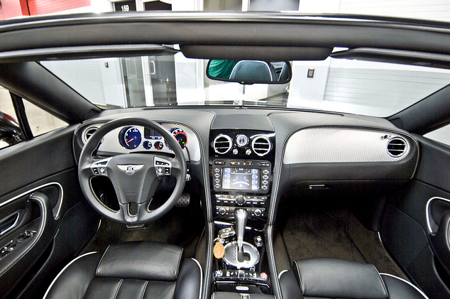 Introduced in 2010, the 80-11 editions encompassed both the GTC and the GTC Speed. Our special Bentley was unveiled during the 60th Pebble Beach Concours d’ Elegance and is 1 of only 80 built in 2011 (hmm the 80-11 numbering is not so mysterious anymore). Featured on the car is a set of stunning 20” 14-spoke wheels with unique black Bentley center caps. Bentley’s British heritage is also spotlighted on the convertible with tasteful Union Jack brightware badging on the front fenders. One of the most unique features is the one-off paint, dubbed “Midnight,” that is coupled with a dark grey soft top. All of this creates a beautiful, dark aesthetic that reinforces the sporty nature of the car. Inside, the creamy Beluga leather is traditional Brit with white contrast stitching, though it does ditch veneers for bright aluminum trim (which are complemented by killer drilled sport alloy pedals).